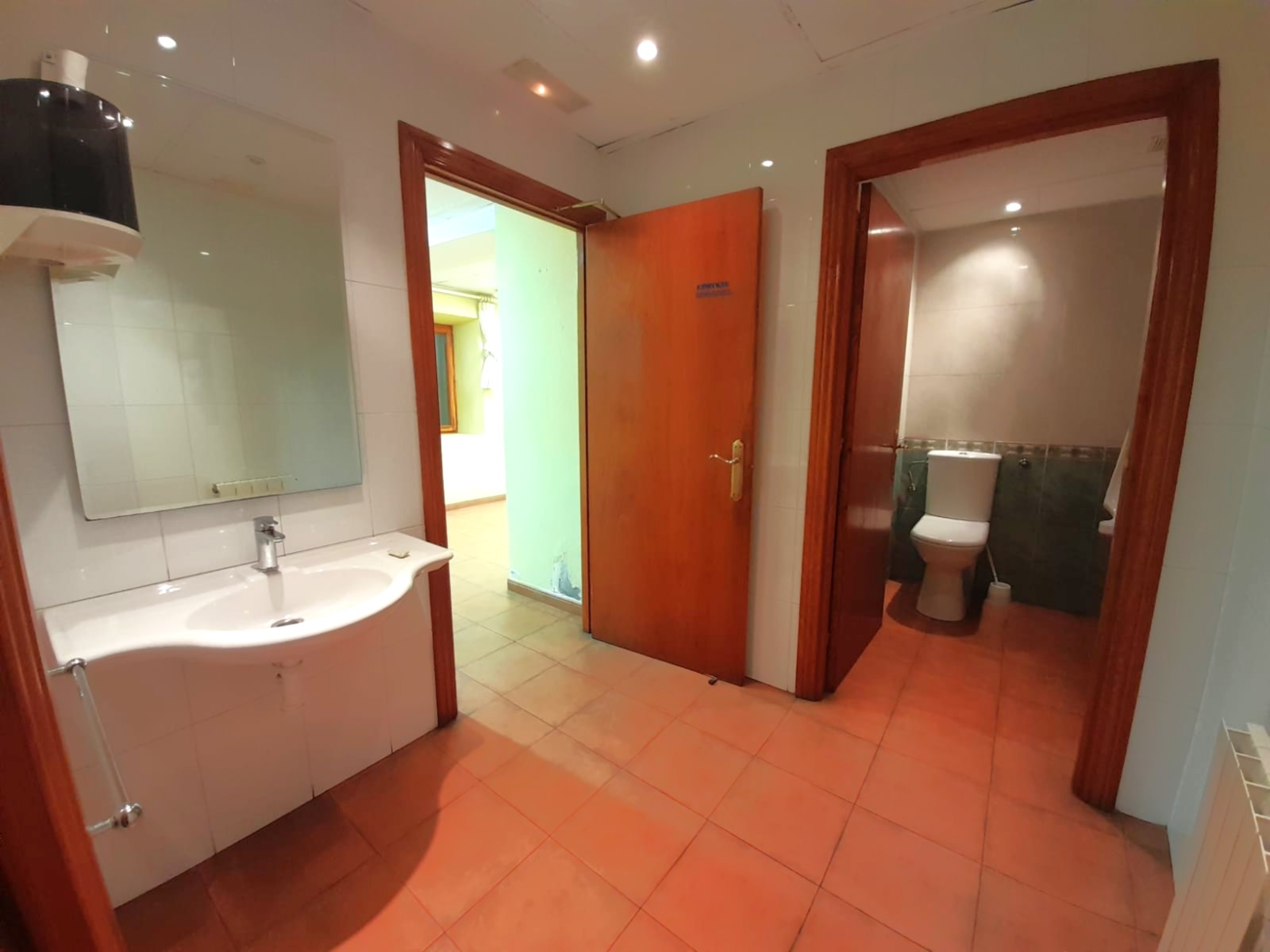 ✔ Aseo adaptado para minusválidos, cumpliendo con la normativa vigente y otro aseo independiente, con zona neutra con lavabo entre ambos aseos.